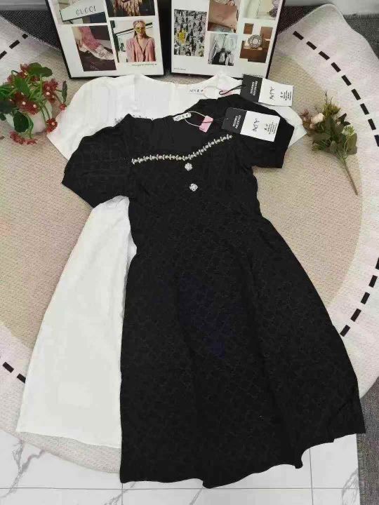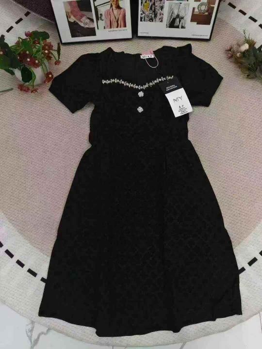 法式菱格镶钻方领高腰修身高级时尚连衣裙 数量112件 码数M--4XL 整款两个色 独立包装带吊牌 货品整洁质佳。 货号:1303