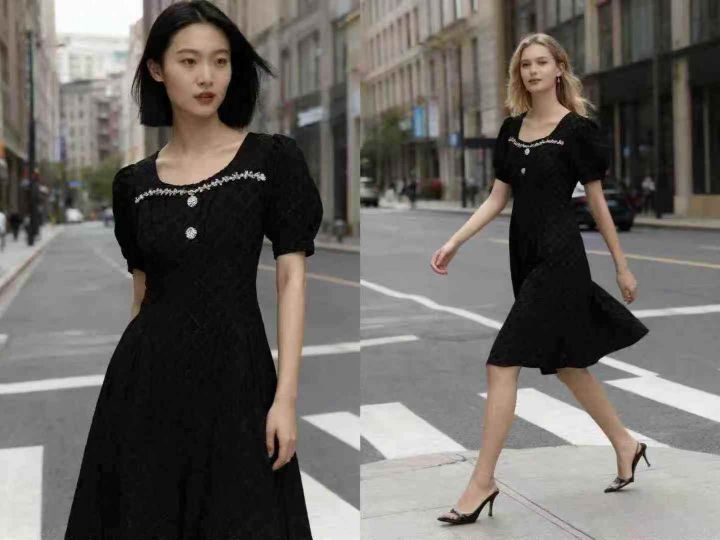 全清19.5法式菱格镶钻方领高腰修身高级时尚连衣裙 ...