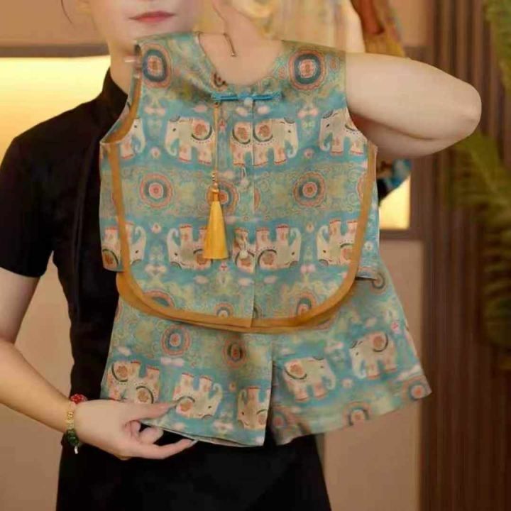 男女童夏季时尚汉服套装洋气中式国风背心短裤两件套,配送流苏,独立包装,码数80-150码,数量417套,分货加1,货号926#86