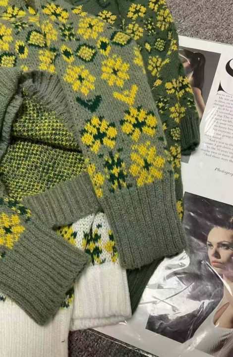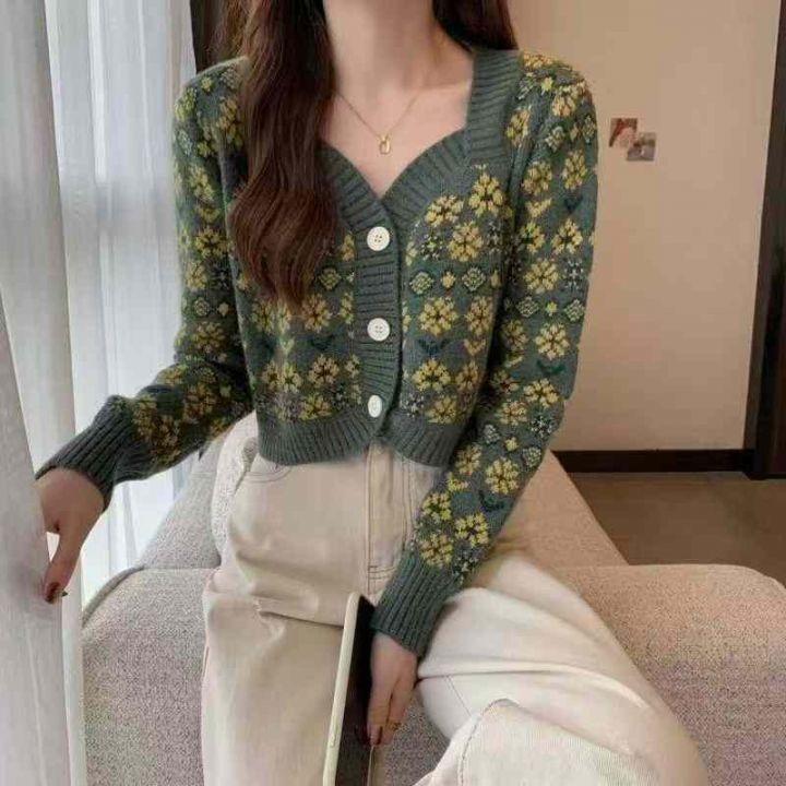 秋冬季新款小香风提花洋气加厚包芯纱短款毛衣开衫,独...