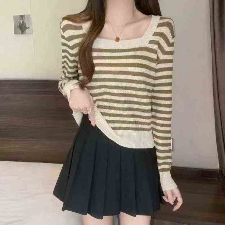 秋冬新款宽松撞色条纹针织方领套头毛衣,独立包装,均码面料柔软舒适弹力大,638件,全清7.9元超低价秒杀!分货加一!