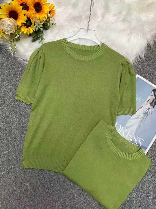 春夏新款泡泡半袖温柔风包芯纱套头毛衣,独立包装,均码面料软糯舒适弹力大...