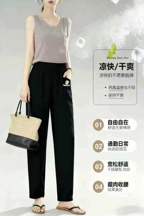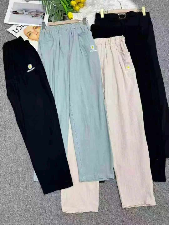捡漏309条刺绣菊花麻棉休闲修身女裤冰丝直筒裤,独立包装,码数M-3XL(1-5),大货图四款为主,货号118#4