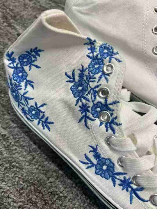 经典港风复古帆布鞋,花卉国潮刺绣匡威鞋,高端品质好货,深圳实体店货,款式新潮,质量上乘,数量130双,码数37-41,大部分都有配鞋盒,不分货
