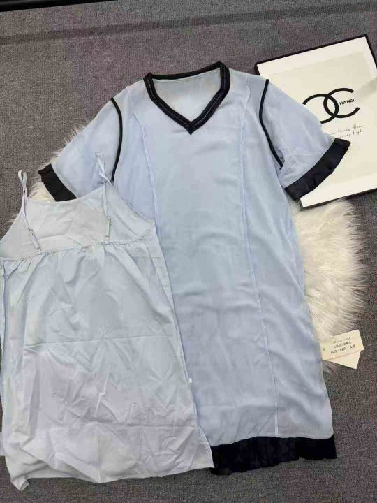 全清5.9,小清新蓝色撞色吊带背心两件同穿连衣裙,实拍如图6,均码46件,不分货