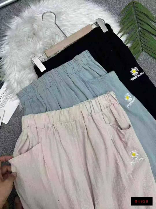 全清价7.5元捡漏309条刺绣菊花麻棉休闲修身女裤冰丝直...