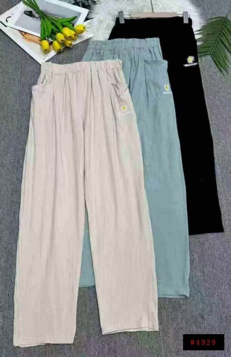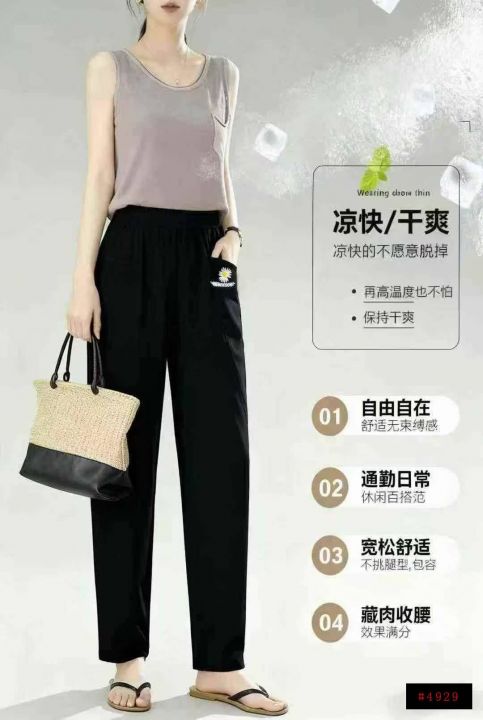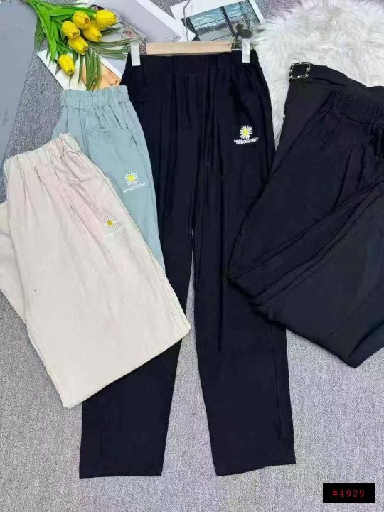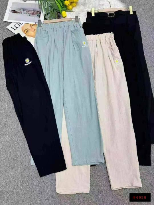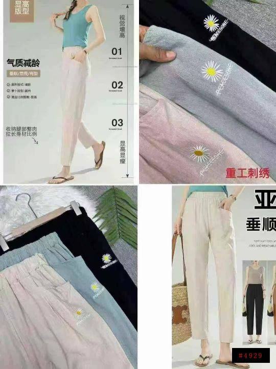 捡漏309条刺绣菊花麻棉休闲修身女裤冰丝直筒裤,独立包装,码数M-3XL(1-5),大货图四款为主,货号118#4@_@