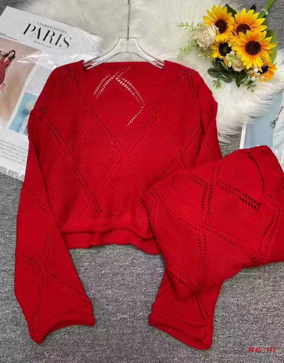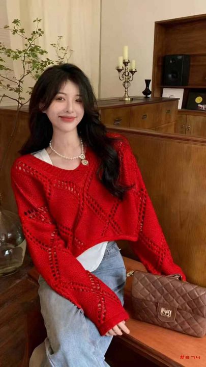 秋季新品宽松慵懒风大版镂空菱格V领计感小心机长袖针织衫,独立包装,均码大版型,面料软糯舒适,大红色为主,490件,全清4.9元超低价秒杀!分货加一!@_@
