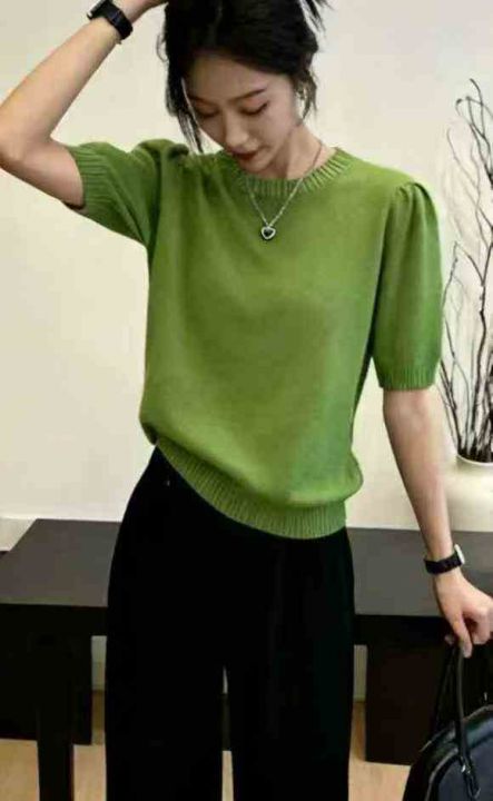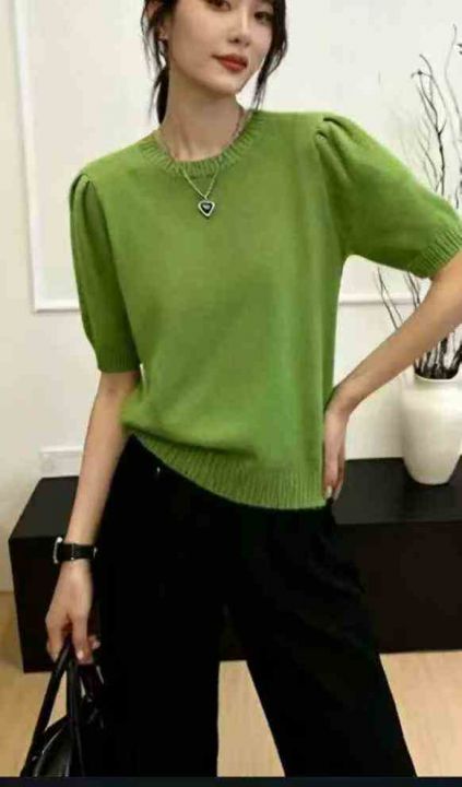 春夏新款泡泡半袖温柔风包芯纱套头毛衣,独立包装,均...