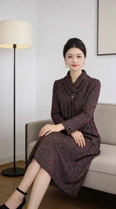春秋新款宽松百搭时尚气质洋气优雅轻熟中长款遮肉显瘦连衣裙,独立包装,码...