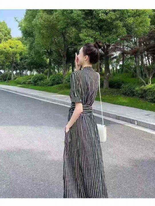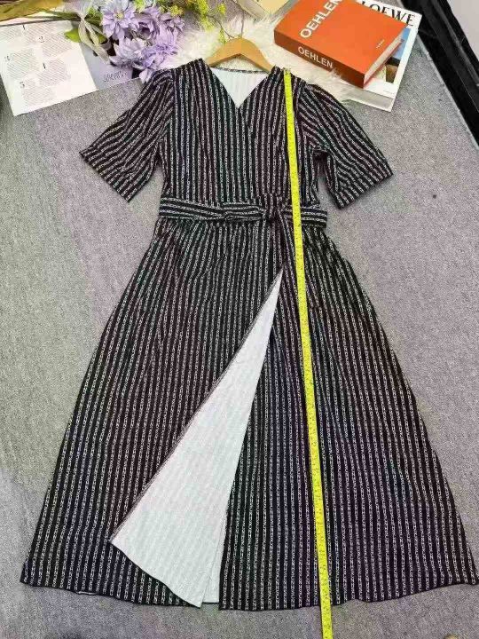 复古法式印花v领显瘦短袖开叉绑带气质长连衣裙,独立包装,码数1-4码,数量382条,1码裙长118厘米,分货加1,(货号0913#44)