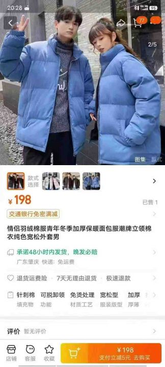 男女同款冬季加厚保暖面包服潮牌棉衣纯色宽松外套总数...
