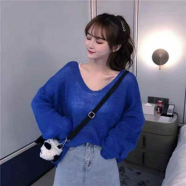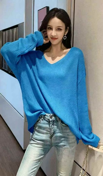 春秋新款慵懒风V领薄款时尚宽松休闲洋气百搭长袖针织...