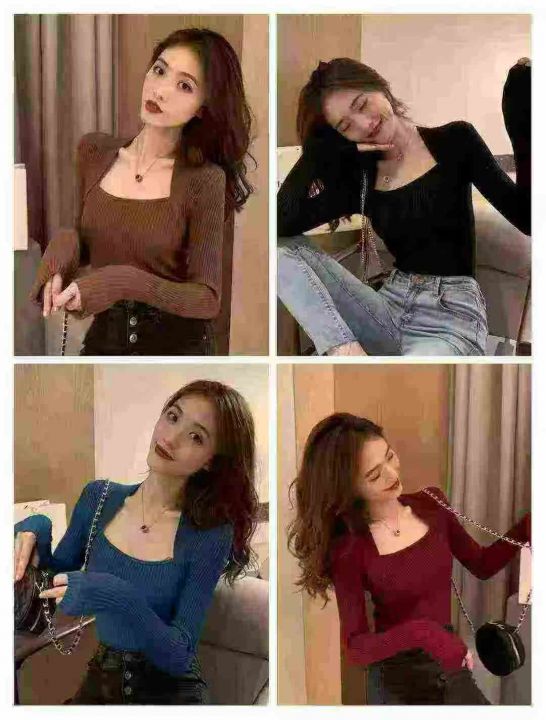 包芯纱超火的毛衣方领打底衫女内搭冬季紧身显瘦洋气秋冬百搭针织衫上衣,独立包装,均码,430件,清8.5,分➕1