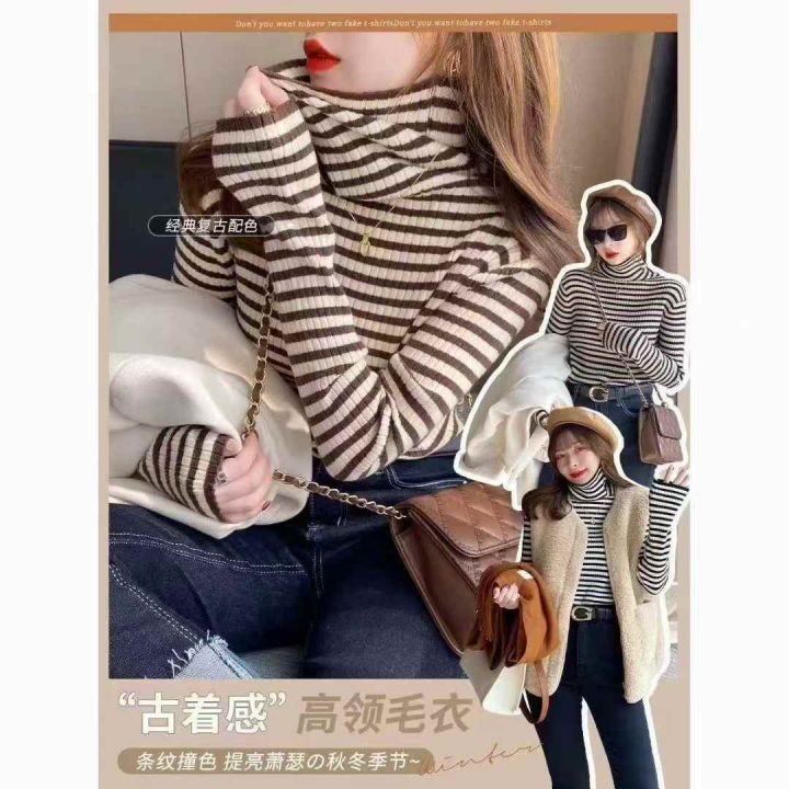 秋冬新款高品质宽松大版堆堆领高领条纹包芯纱2条毛套头毛衣,独立包装,均码宽松款,面料软糯厚实弹力大,346,全清8.9元超低价秒杀!分货加一!