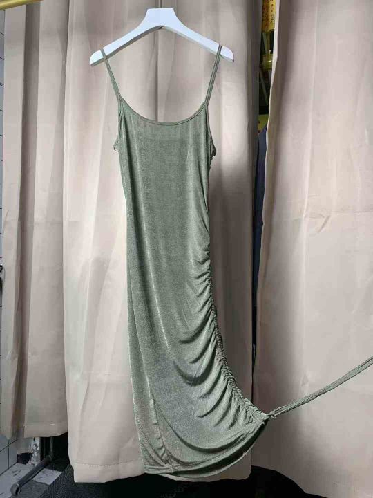 9.9清148件欧美性感潮流U字领无袖抽褶系绳不规则修身包臀吊带连衣裙 面料柔软舒适 高弹力 码数S-M- L 独立包装