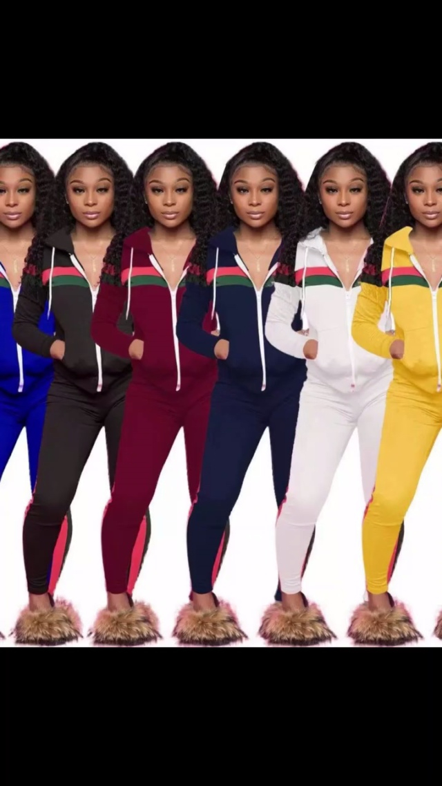 8.8清205套2025春秋跨境欧美女装亚马逊简约时尚休闲拼接运动套装(女拉链款...
