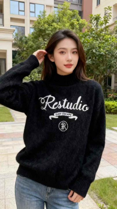 秋冬新款高品质女装宽松加厚雪尼尔拼水貂毛套头毛衣,...