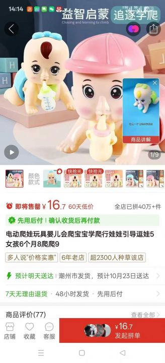 到货500个电动爬娃,2.5 元