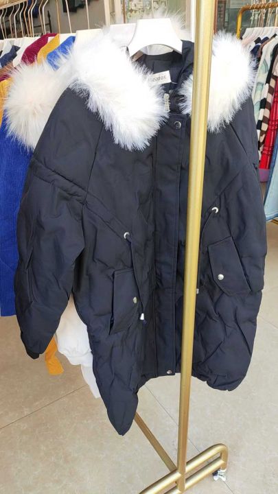 女装中长款连帽带毛领棉服 均码,六七十件单款两色 ...