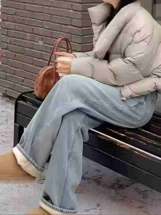冬季新款网红复古蓝刺绣设计款加绒加厚直筒阔腿牛仔裤,独立包装带吊牌带防...