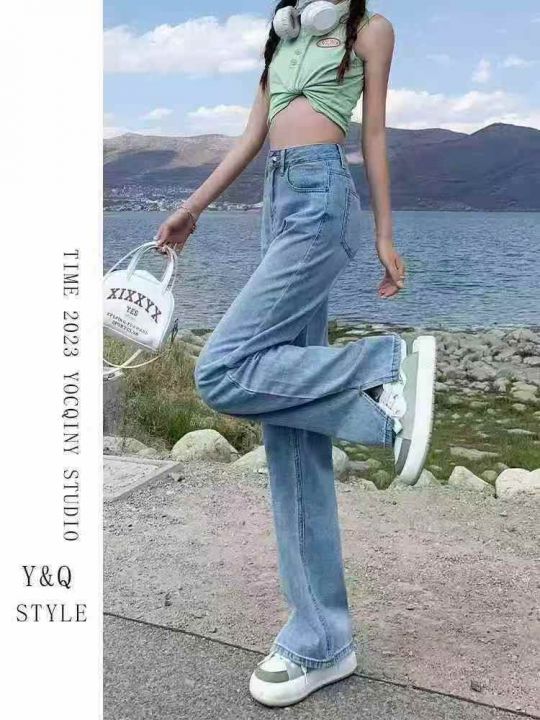 高弹力直筒牛仔裤女高腰宽松显瘦简约开叉阔腿裤75条全清12.8元,码数25-30...