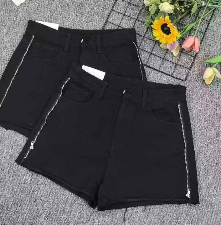 夏季新款女装设计感拉链毛边显瘦高腰牛仔短裤,独立包装带吊牌,码数S-XL码...