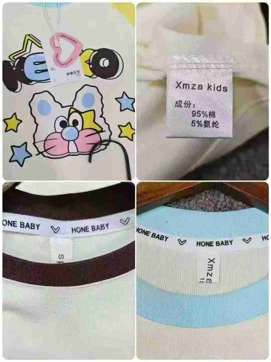天猫仓回收650件卡通可爱插肩袖儿童纯棉短袖T恤,码数90-150。纯棉面料柔软舒适,版型质量都特别好,货品超好,带纸板独立包装。。 货号:1323