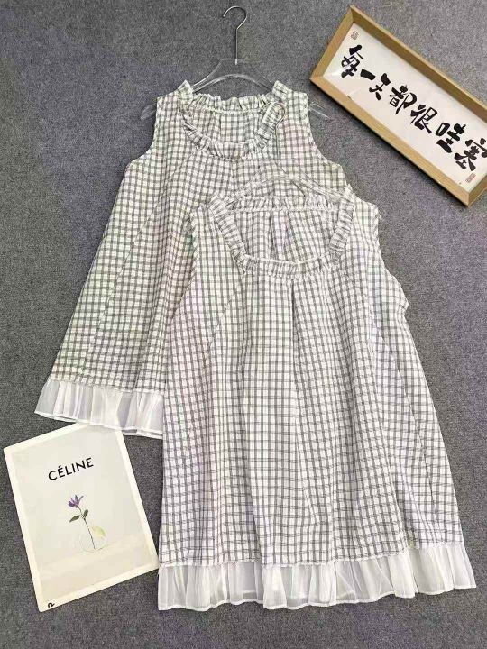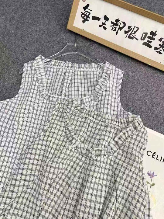 韩系复古无袖上衣170件6.9,格子花领口,拼接设计,码...