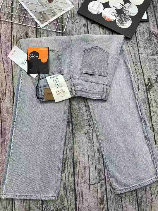 ☕️63033# 美式拼接毛边阔腿牛仔裤女秋季新款高腰宽...