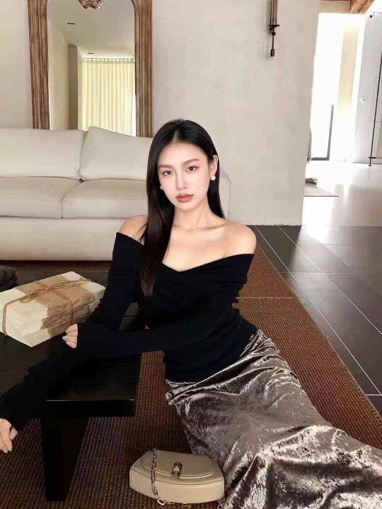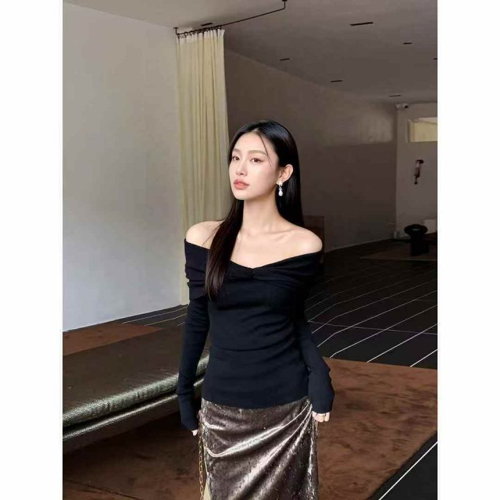80件左右早秋穿搭一字露肩扭结黑色打底上衣!面料软糯...