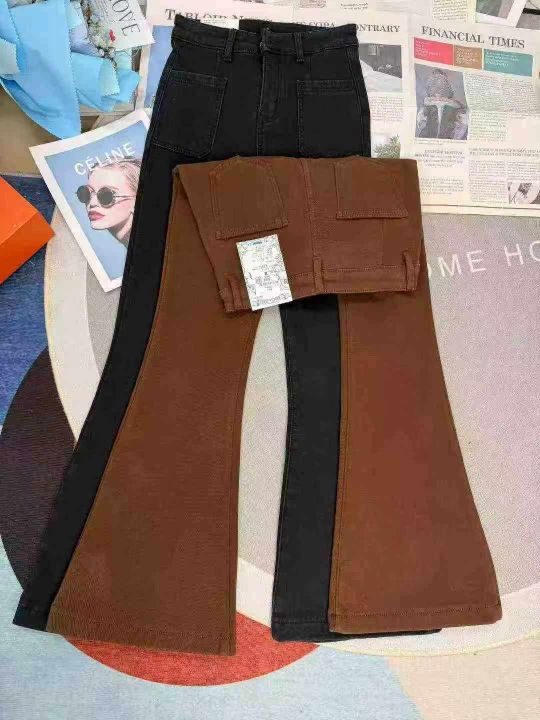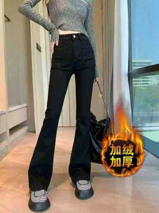 高腰加绒加厚微喇叭女土弹力牛仔裤,整款2个颜色,独...