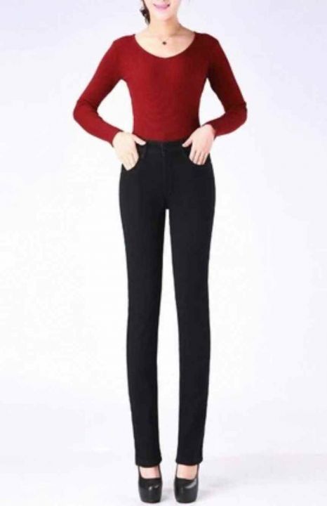 秋冬新款弹力加绒加厚女装洗水棉牛仔长裤,独立包装带...