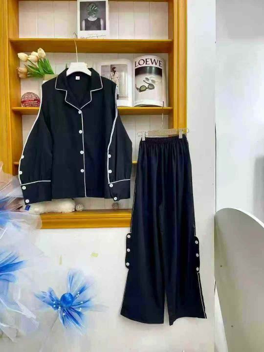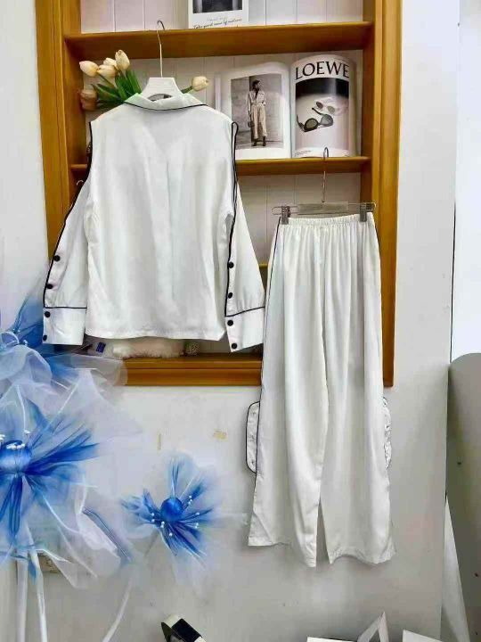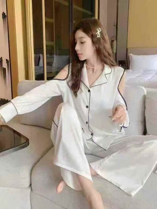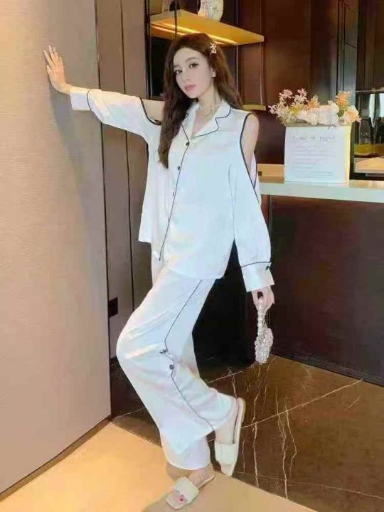 ① 网红爆款冰丝性感长袖长裤睡衣两件套装!整款两色,...