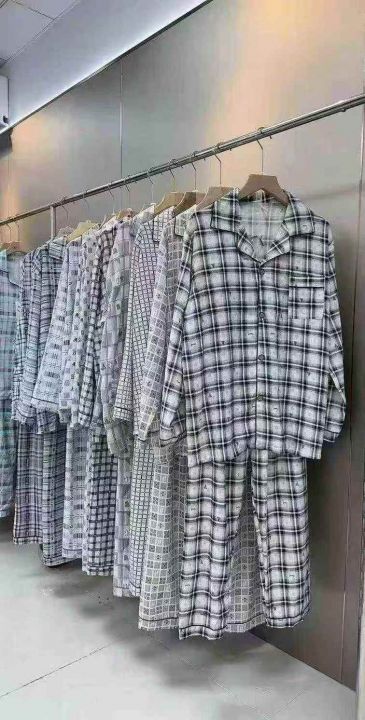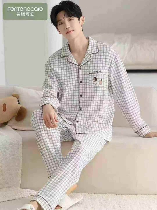 纯棉长袖翻领家居服,整款、齐码齐色,20-30个图案,尺码M-3 XL,50套起批。 货号:1303