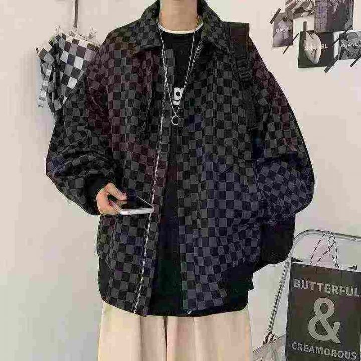 全清12.8棋盘格外套男春秋季bf潮牌宽松炸街上衣日系复古休闲痞帅工装夹克大...