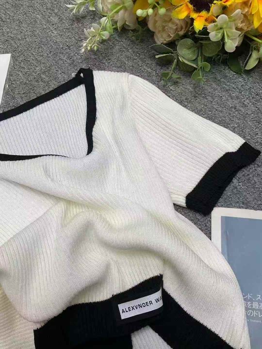 早秋新款小香风撞色刺绣减龄百搭拼接水貂毛设计款套头毛衣,独立包装,黑白...