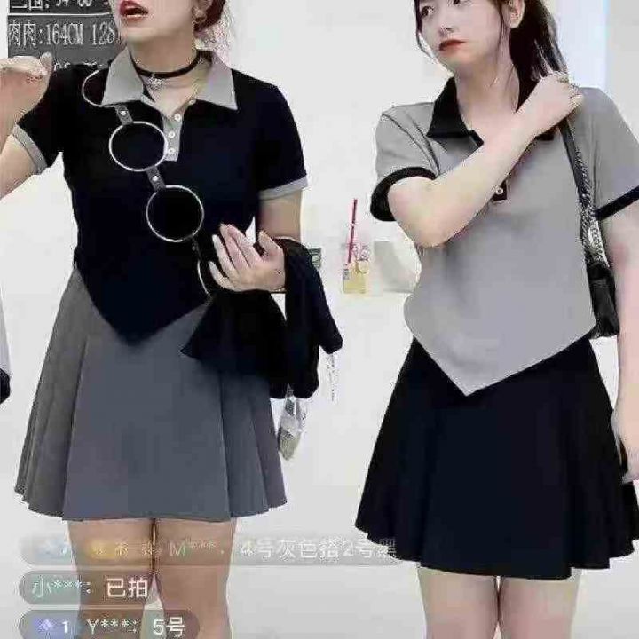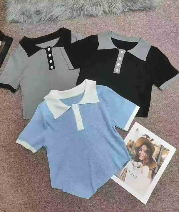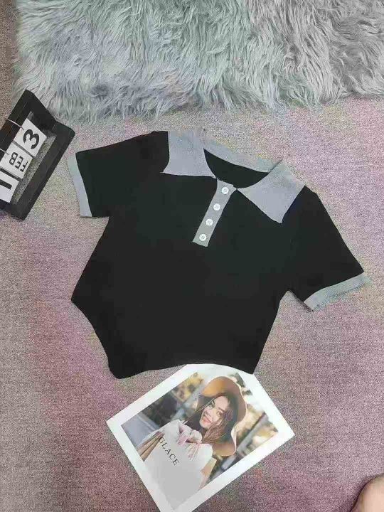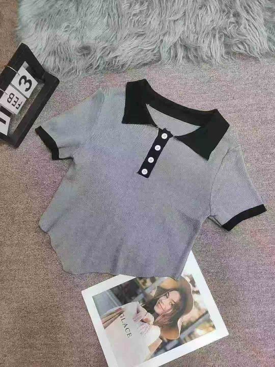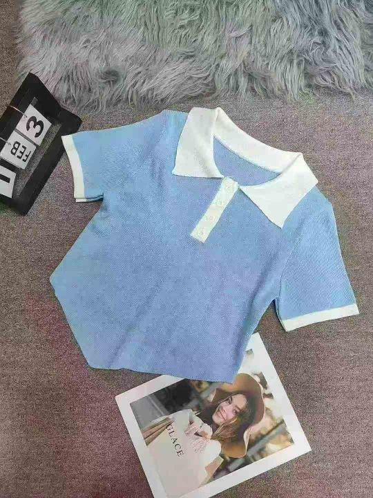 不规则polo领短袖T恤女夏季小个子短款显瘦女设计感甜美针织短袖上衣,独立包装,均码,300件,清6.5,分➕1