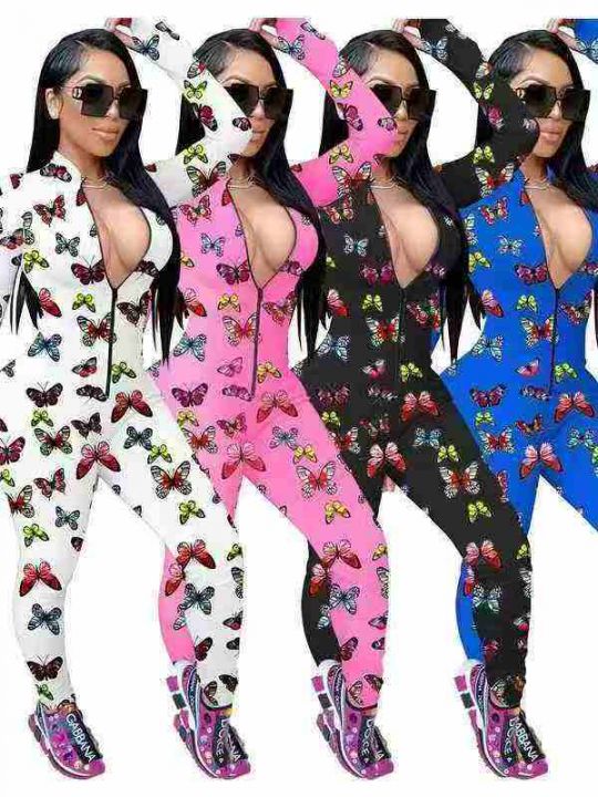 5.8清148件欧美女亚马逊印花长袖女士连体家居服可外穿爆款休闲宽松连体衣 码数M-4XL 独立包装