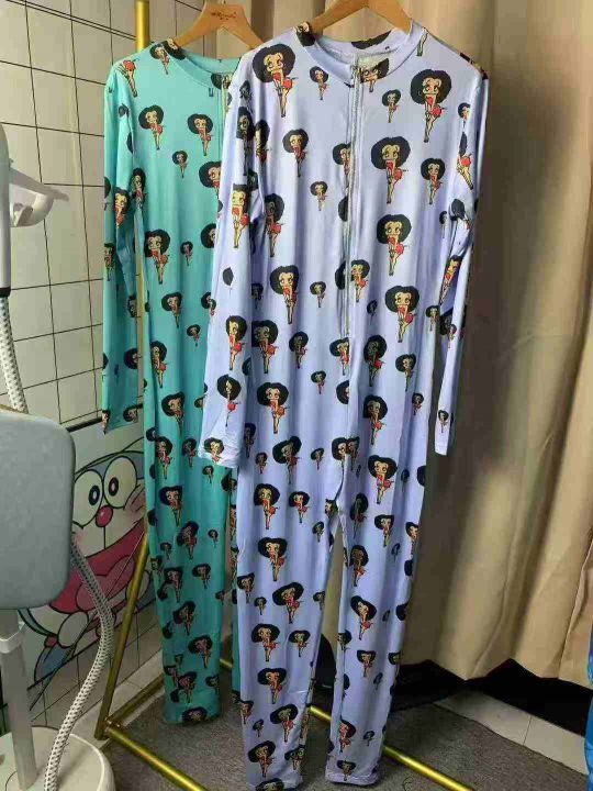 5.8清148件欧美女亚马逊印花长袖女士连体家居服可外穿...
