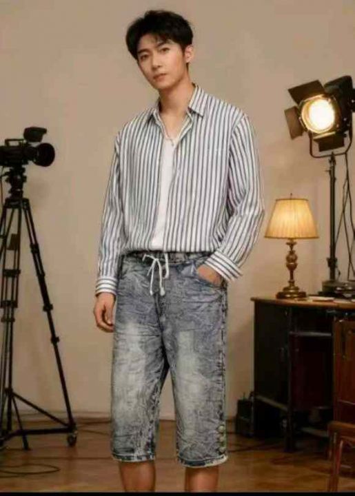 男女同款复古蓝高弹力洗水棉松紧腰牛仔中裤,独立包装,码数M--2XL码,400...