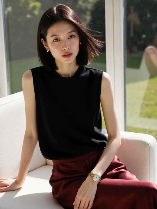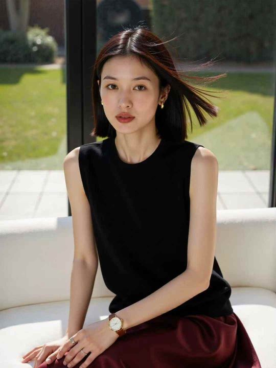 夏季新款净版简约大气冰丝针织背心,独立包装均码面料...