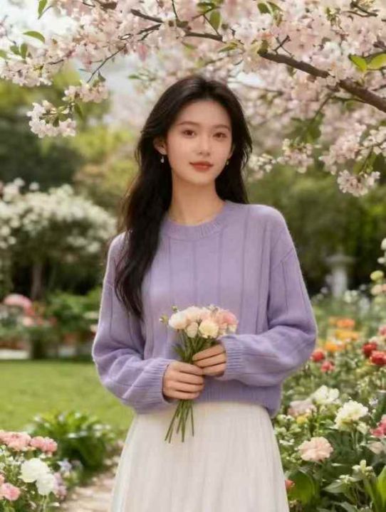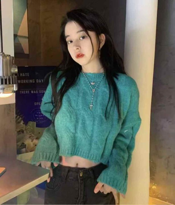 捡漏款,秋冬新款圆领短款宽松慵懒风套头毛衣,独立包...
