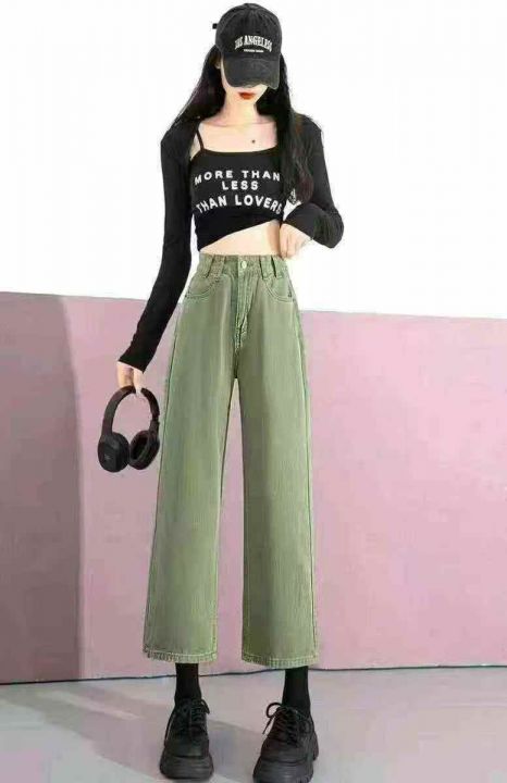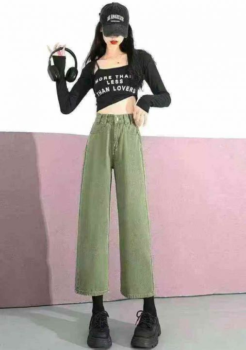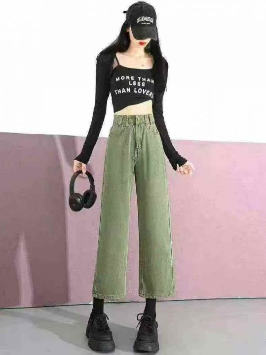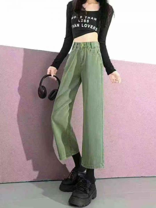 ☕️220条全清9.8S到XL码数,小个子八分直筒牛仔裤女春秋新款牛油果绿色秋冬裤子高腰显瘦阔腿裤。 货号:1303