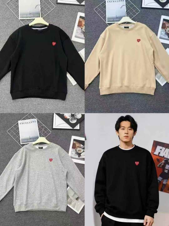 ☕️潮牌加绒卫衣男女秋冬加绒圆领卫衣刺绣爱心港风潮...