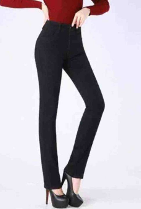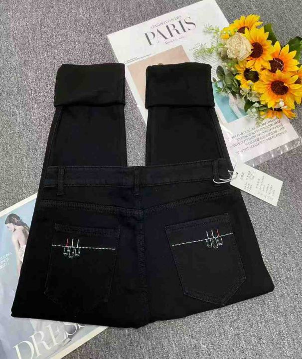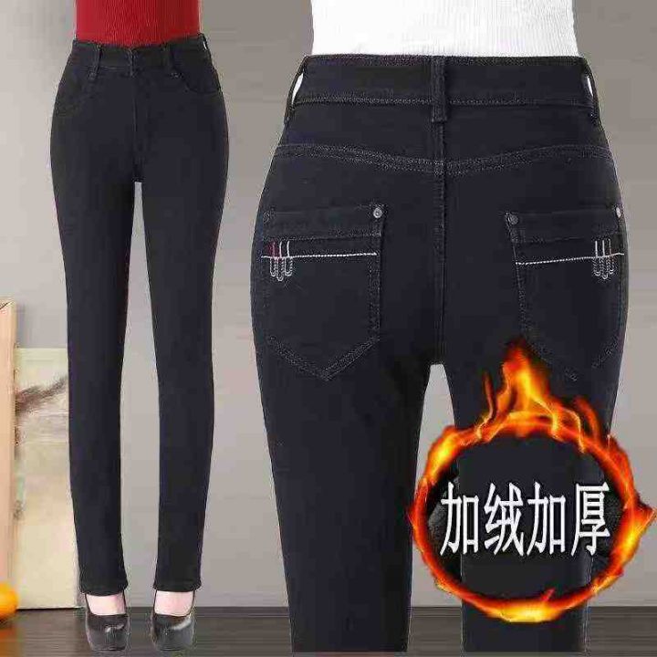 秋冬新款弹力加绒加厚女装洗水棉牛仔长裤,独立包装带...