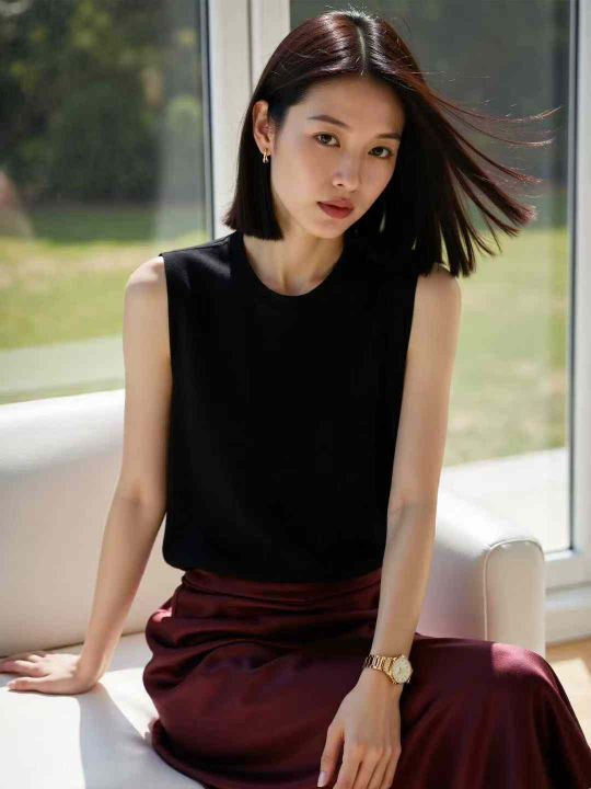 夏季新款净版简约大气冰丝针织背心,独立包装均码面料...