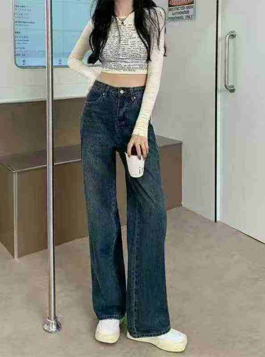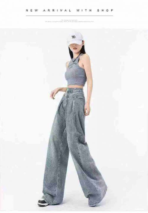 夏季薄款复古高街阔腿牛仔裤女ins垂感高腰,单款单色,独立包装带吊牌,码...