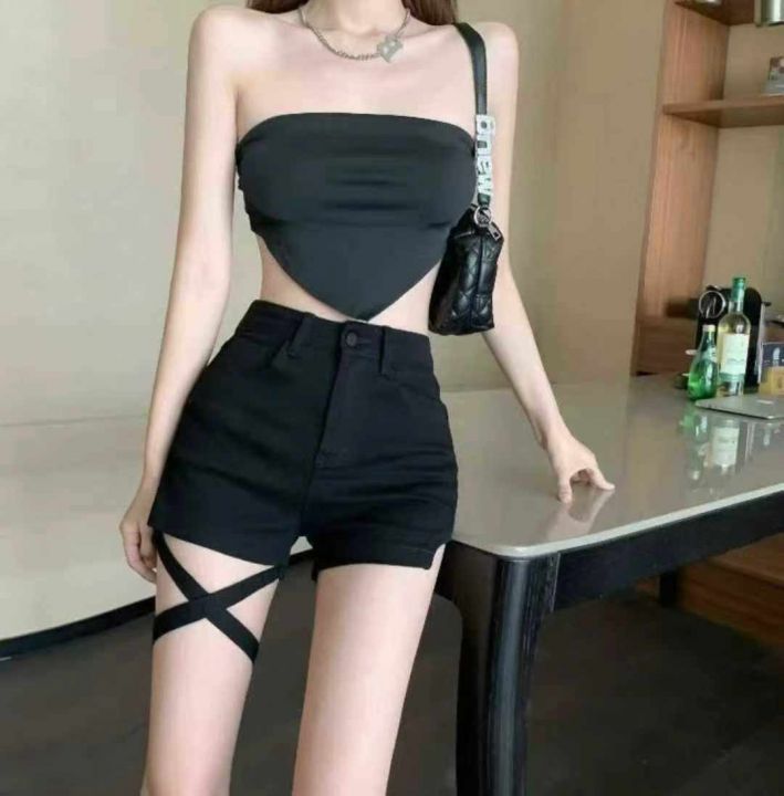 夏季新款港味设计感性感辣妹绑腿弹力修身显瘦百搭洗水...