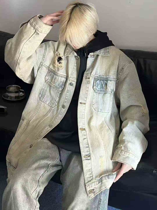 秋季新品洗水棉网红复古做旧男女同款牛仔外套,独立包...